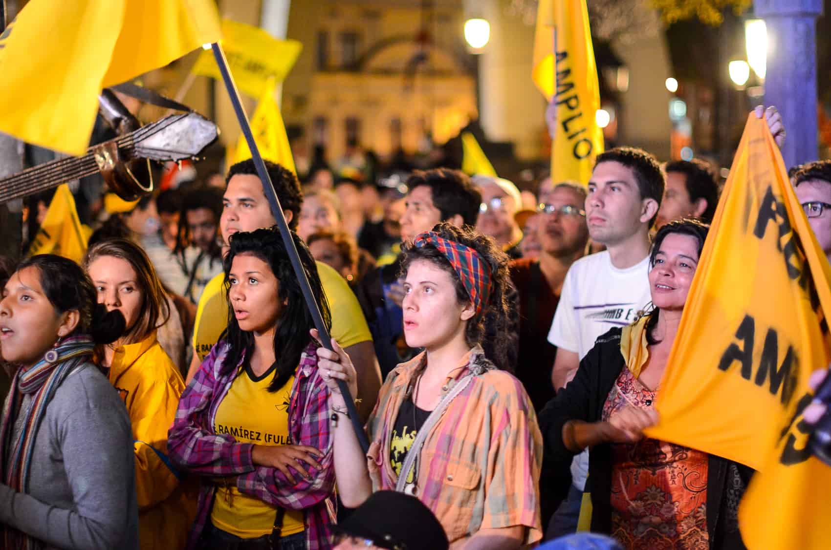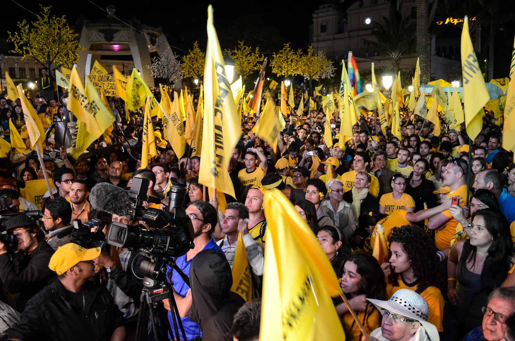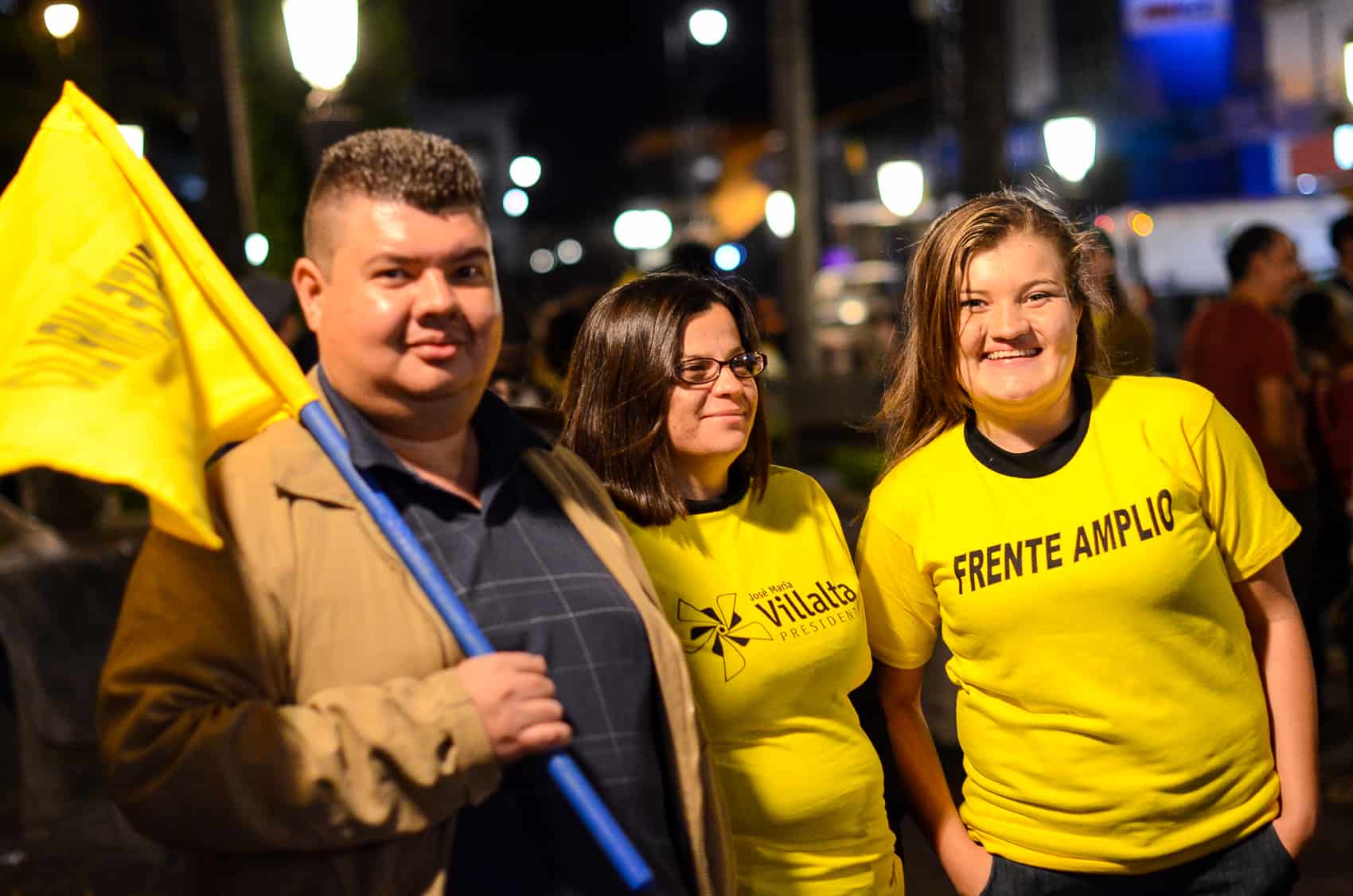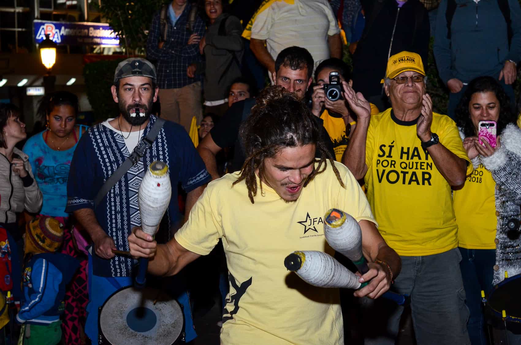 A sea of yellow shirts and flags – the Broad Front’s signature color – spilled into Avenida Segunda, with artists, TV personalities, and people of all ages turning out for an event that culminated with a fiery speech from Villalta and a performance by popular Latin folk band Cantoamérica.
