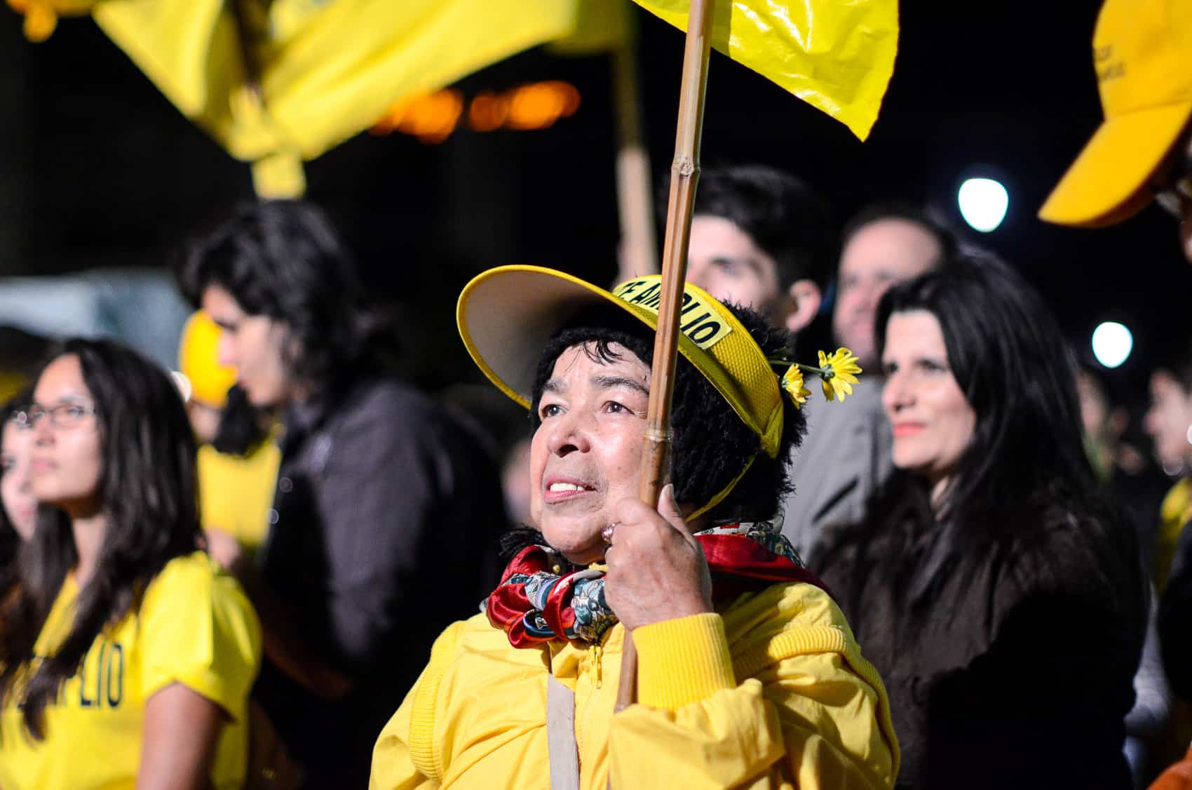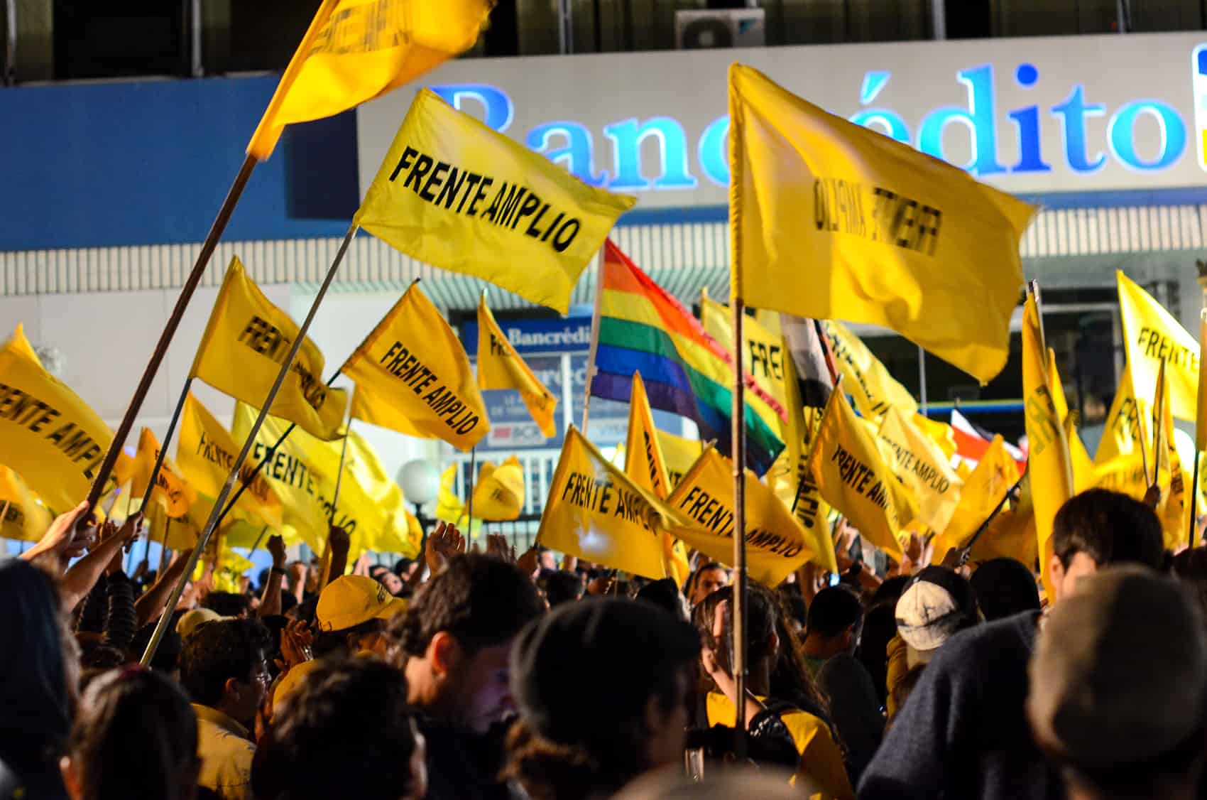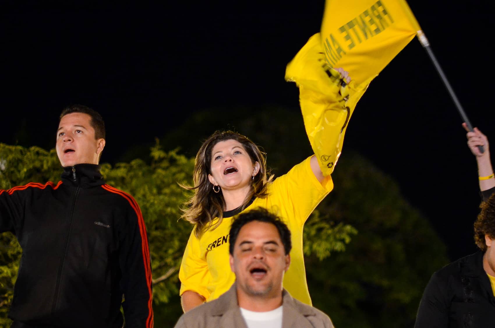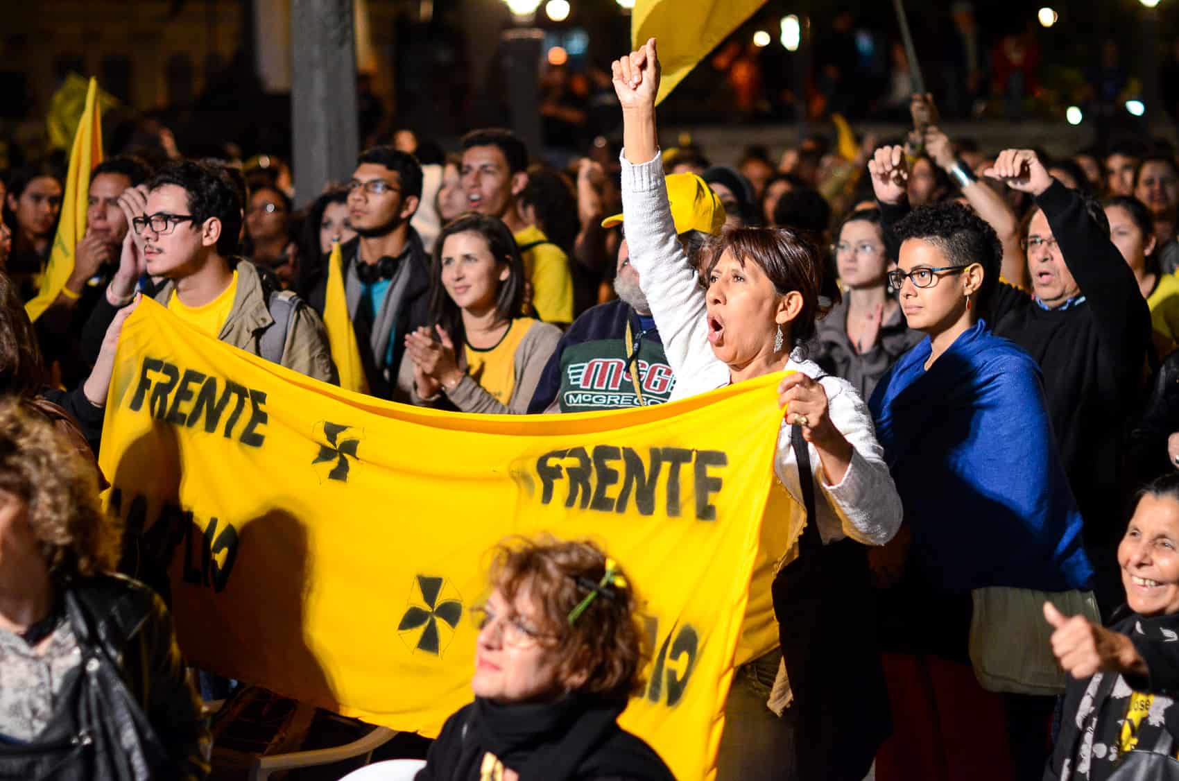 A sea of yellow shirts and flags – the Broad Front’s signature color – spilled into Avenida Segunda, with artists, TV personalities, and people of all ages turning out for an event that culminated with a fiery speech from Villalta and a performance by popular Latin folk band Cantoamérica.