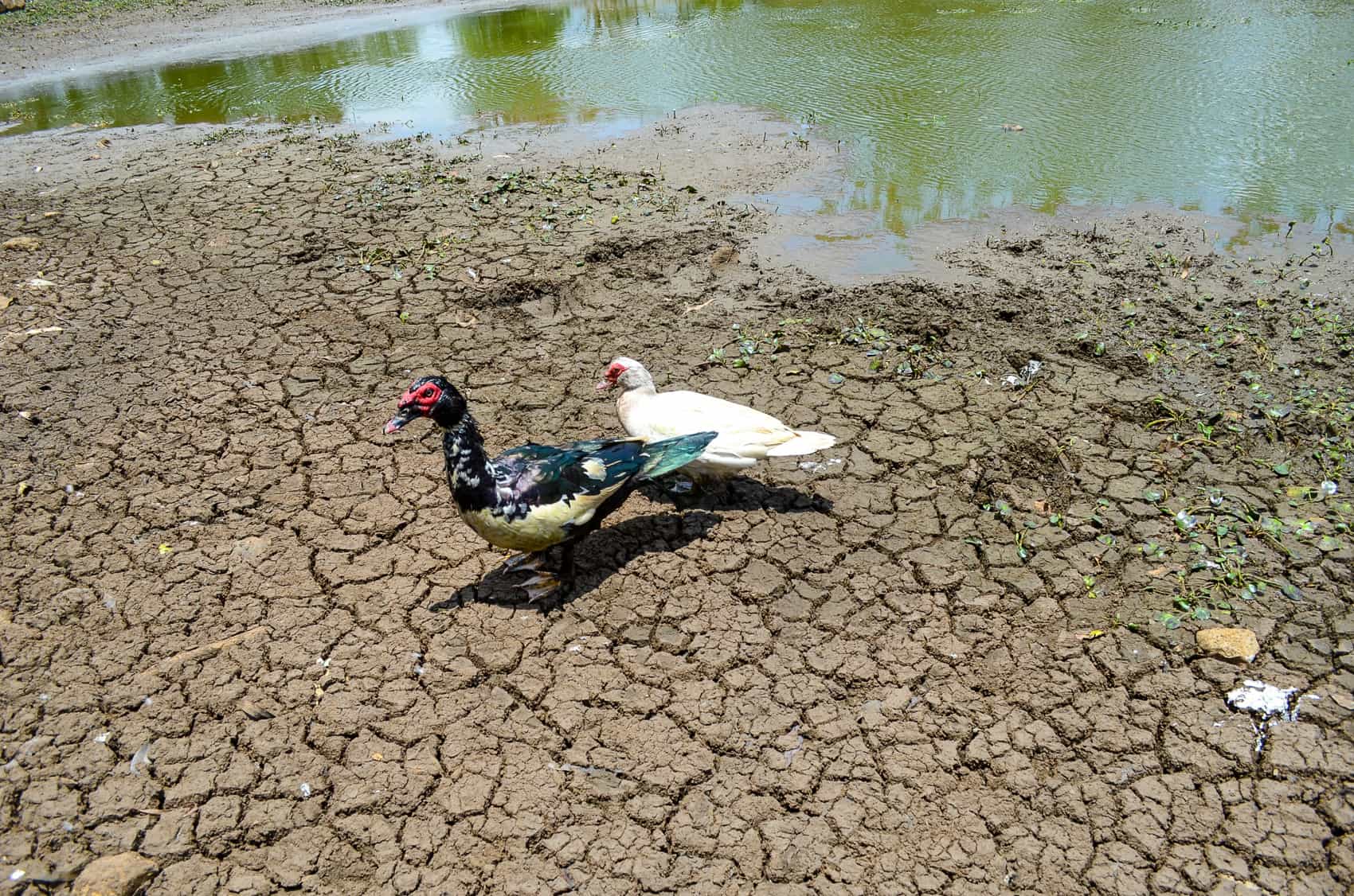 A few birds can still be spotted at what is now a pond, but muddy skeletons of fish and other species are the only visible signs of the life that previously existed here.