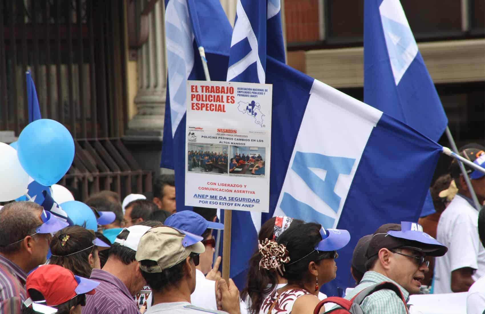 Most of the demonstrators were employees of the National Oil Refinery, the National Police, Traffic Police, Immigration Administration, the Child Welfare Office and the Broad Front Party.
