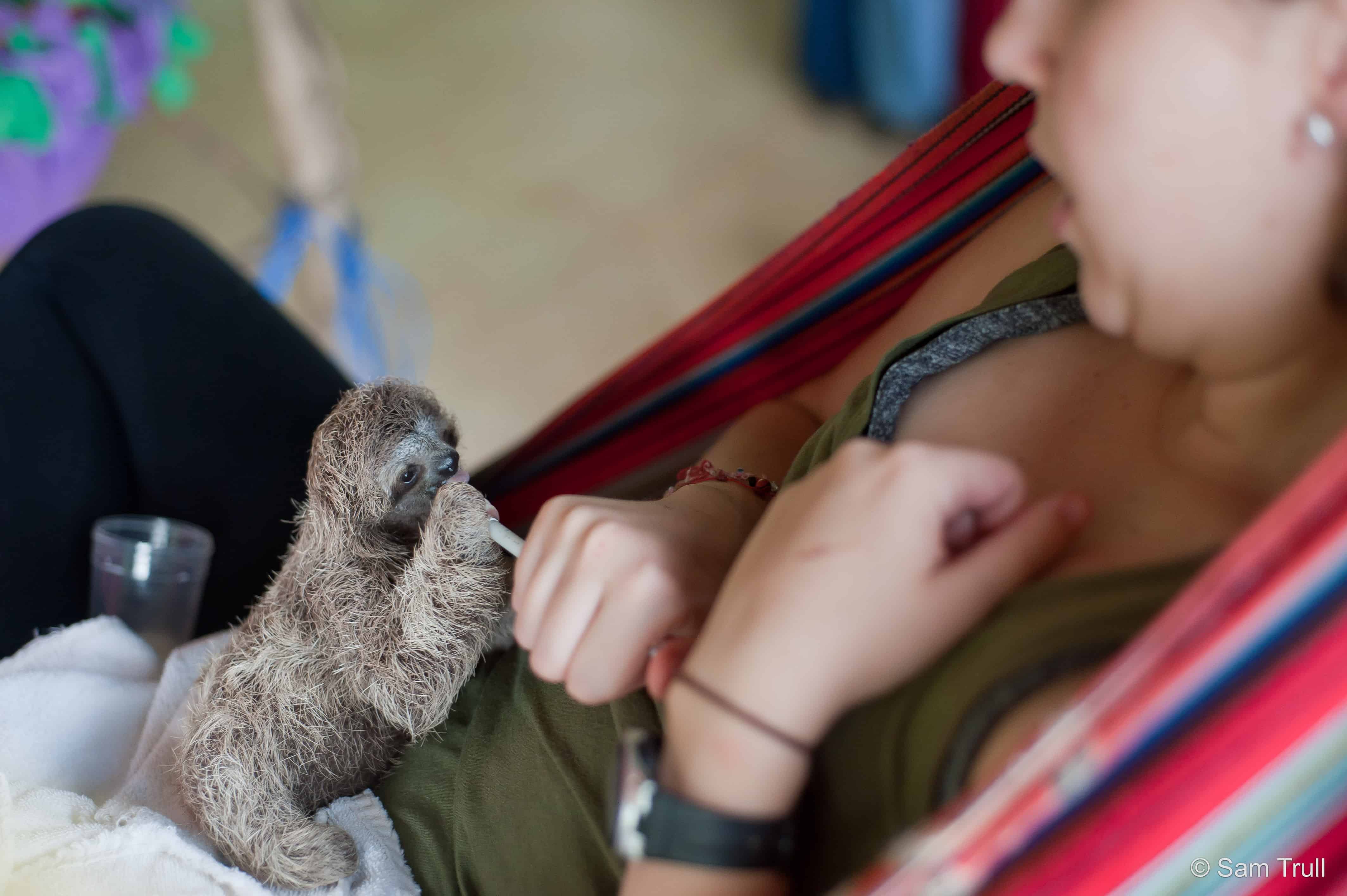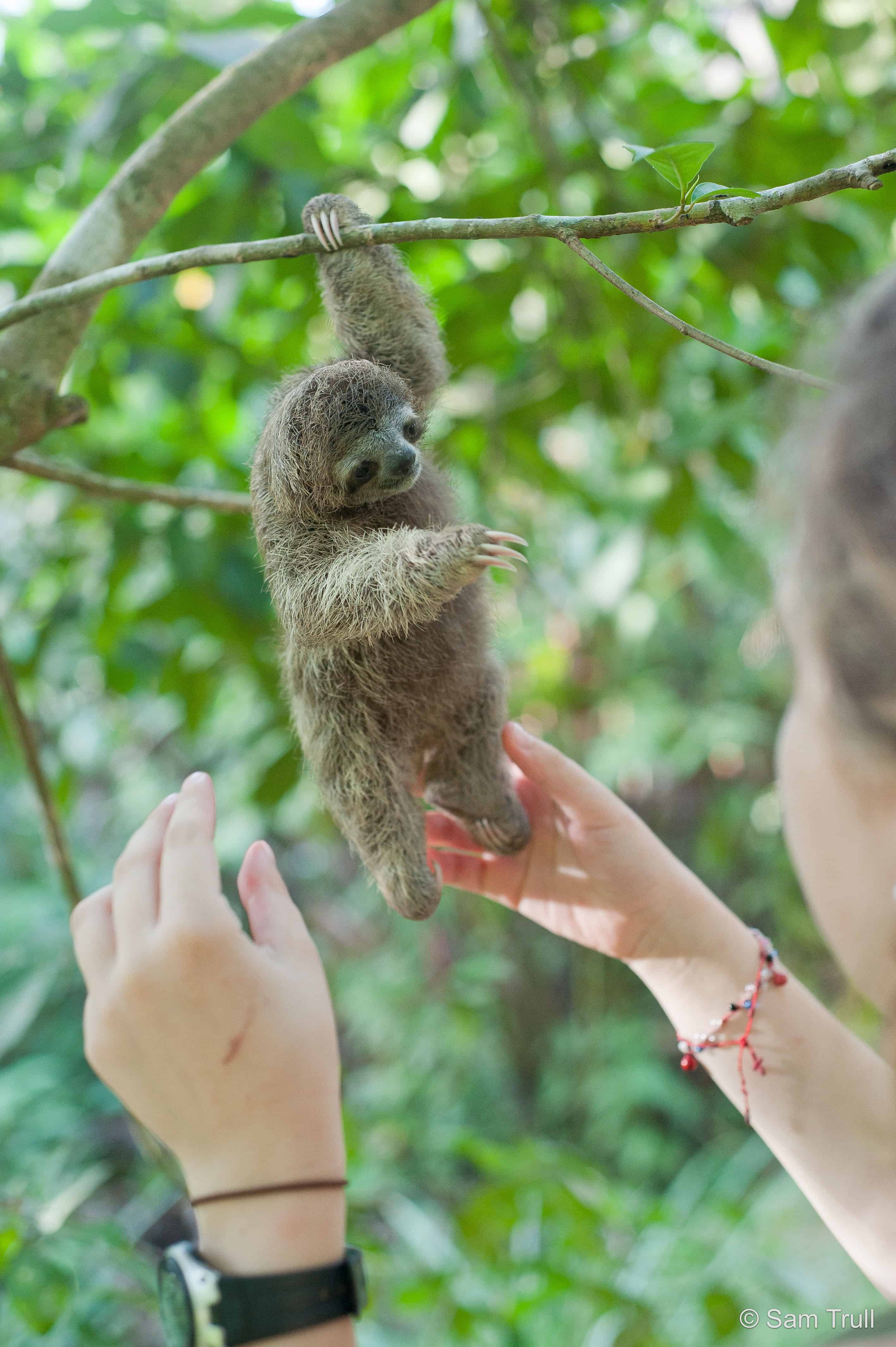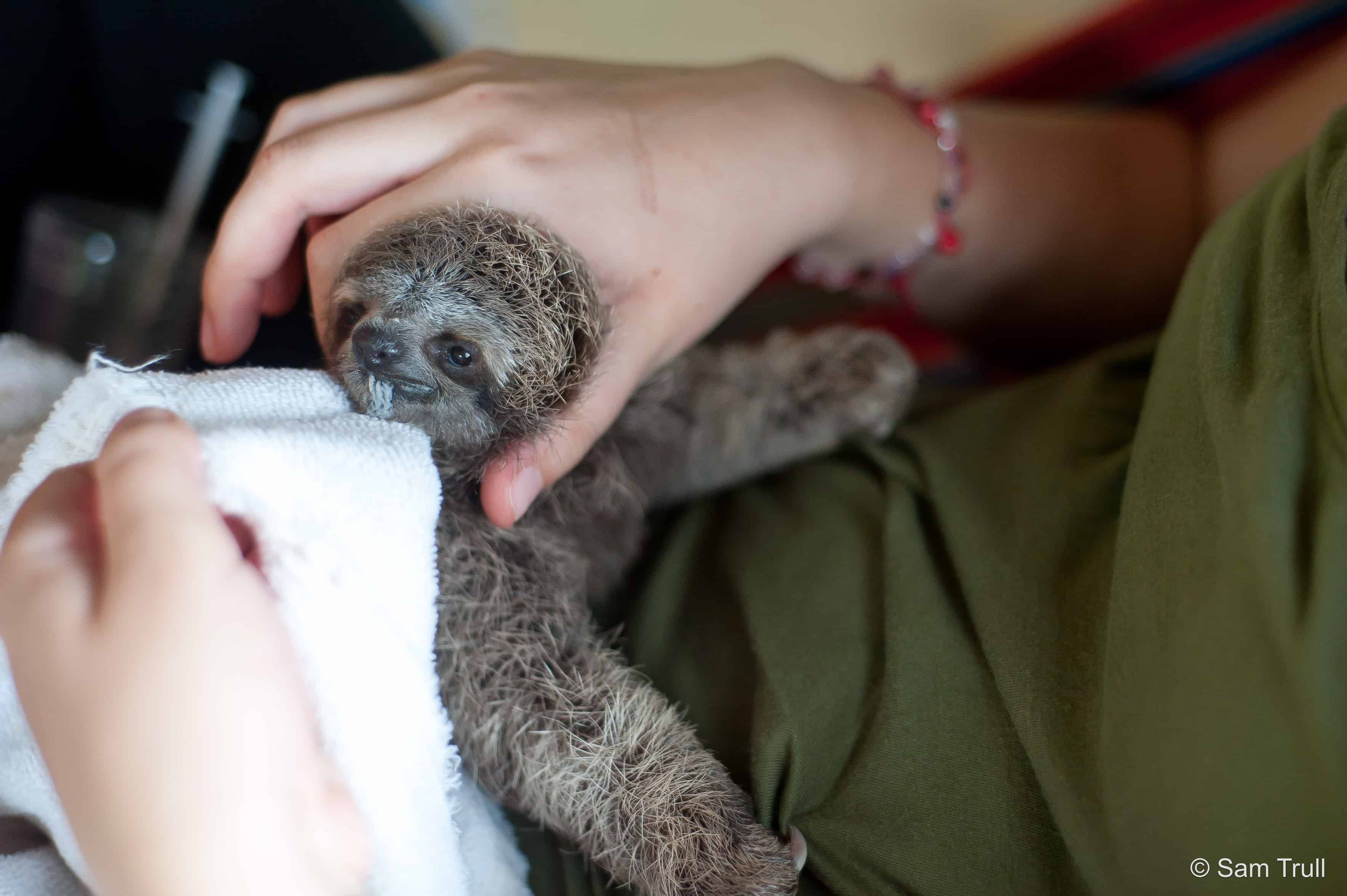 When Anakin, a newly orphaned, weeks old baby sloth, arrived at the Kids Saving the Rainforest rescue center in Manuel Antonio, he seemed weak. At first, the baby sloth’s new handlers thought Anakin was simply exhausted from some unknown trauma, but on closer examination they realized Anakin could not move his back legs. He was paralyzed from the waist down.
