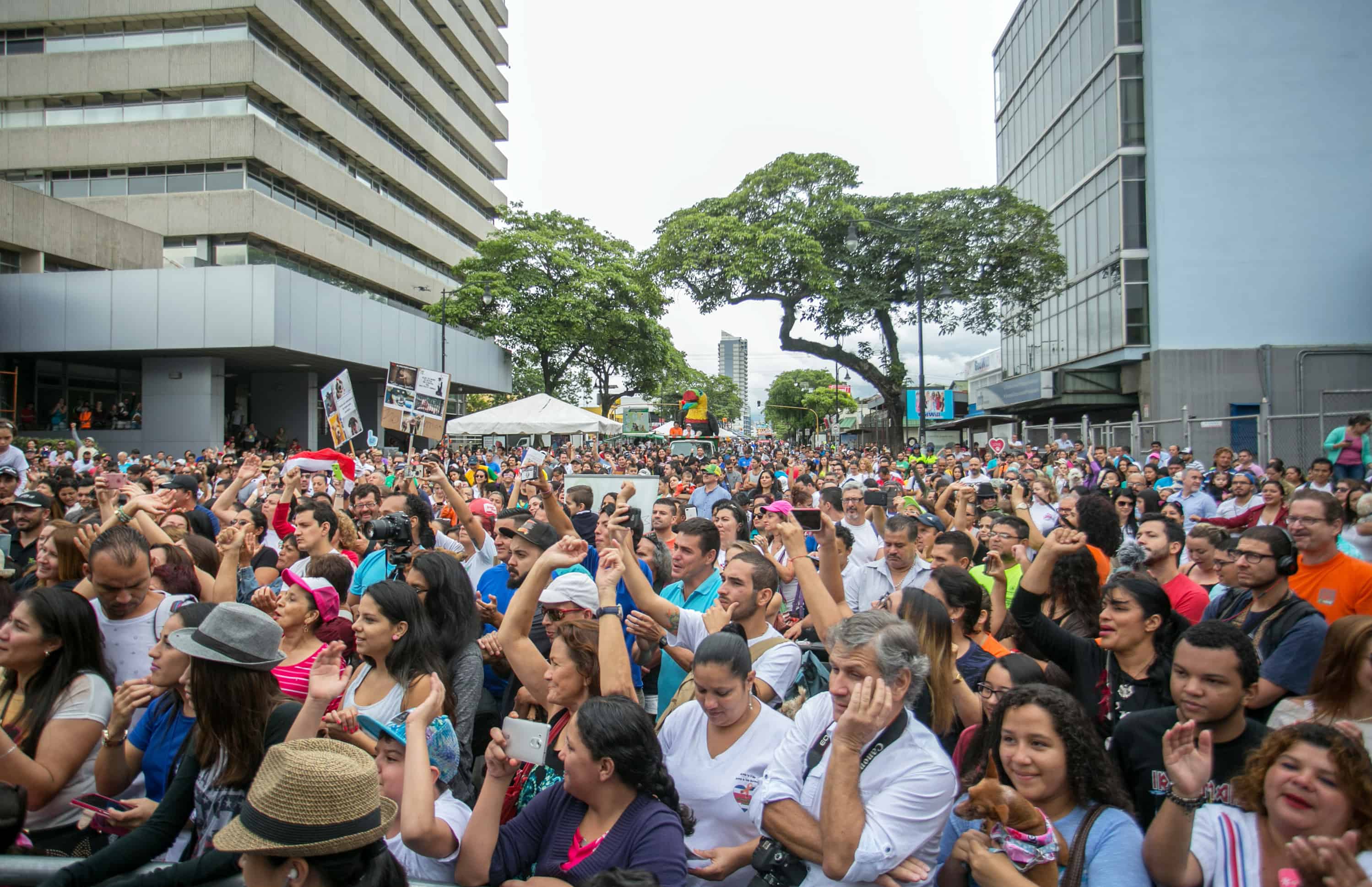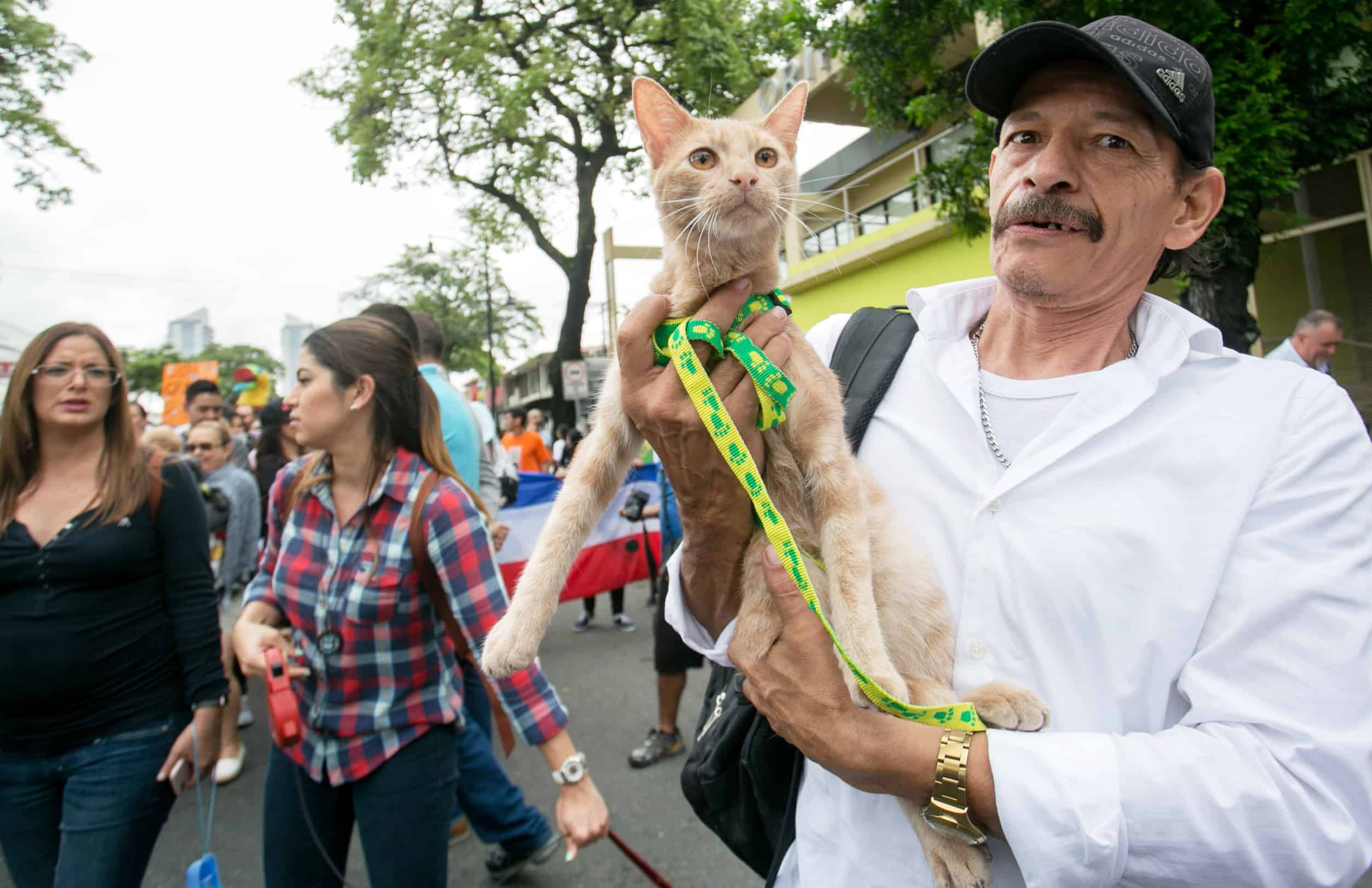 Hundreds of people, many of them accompanied by their pets, marched along Paseo Colón in downtown San José on Sunday to witness President Luis Guillermo Solís and other officials sign into law the recently approved Animal Welfare Bill.